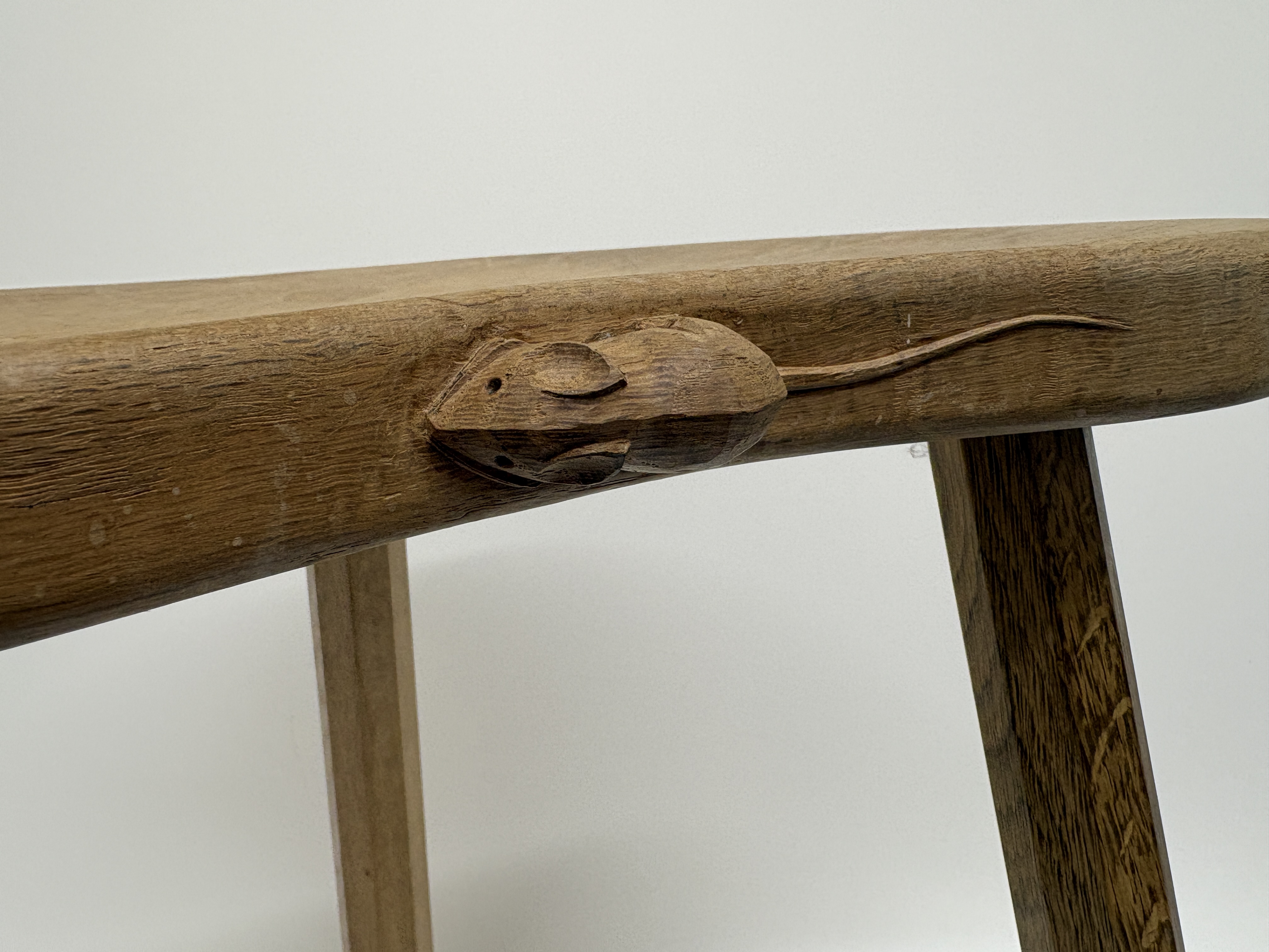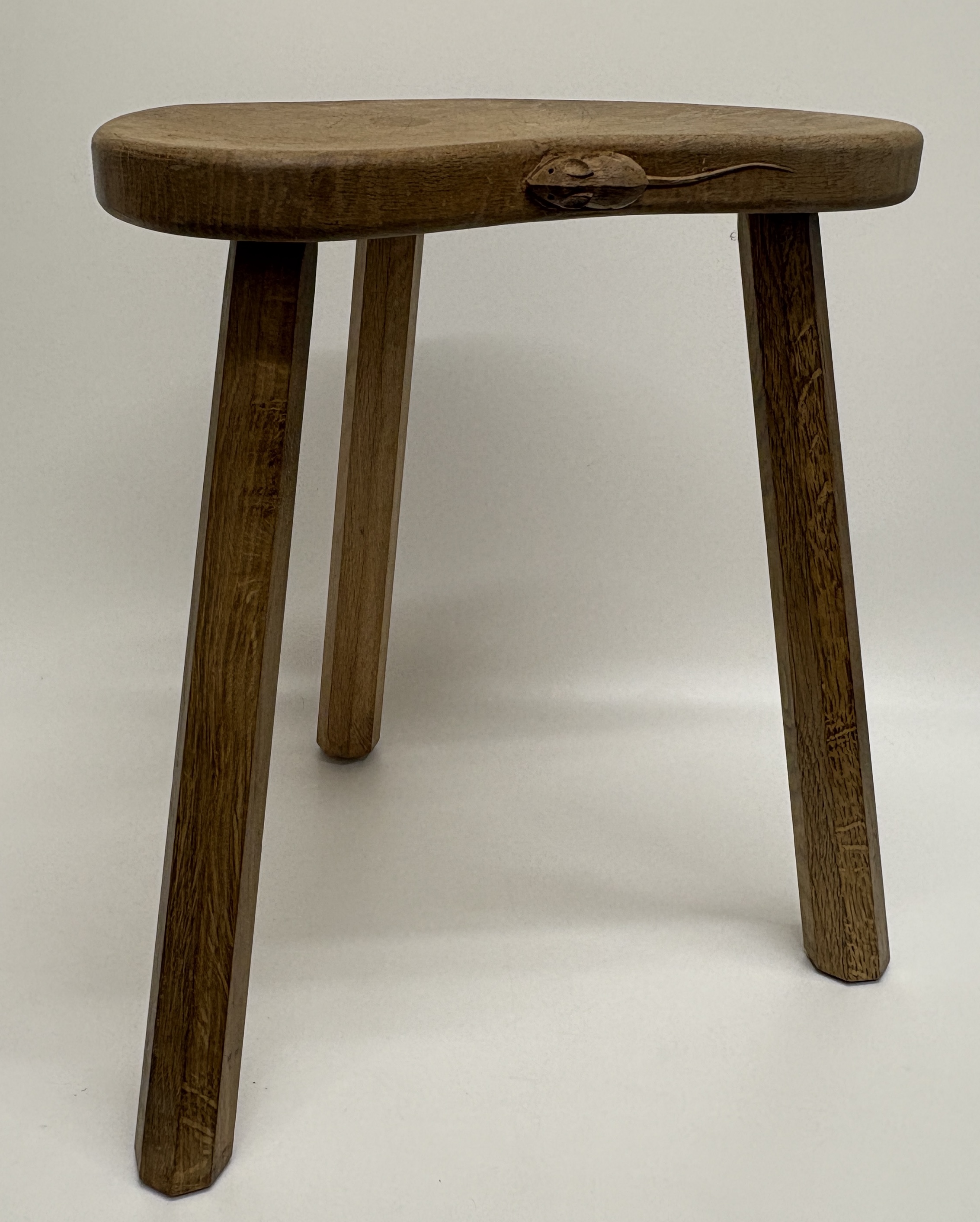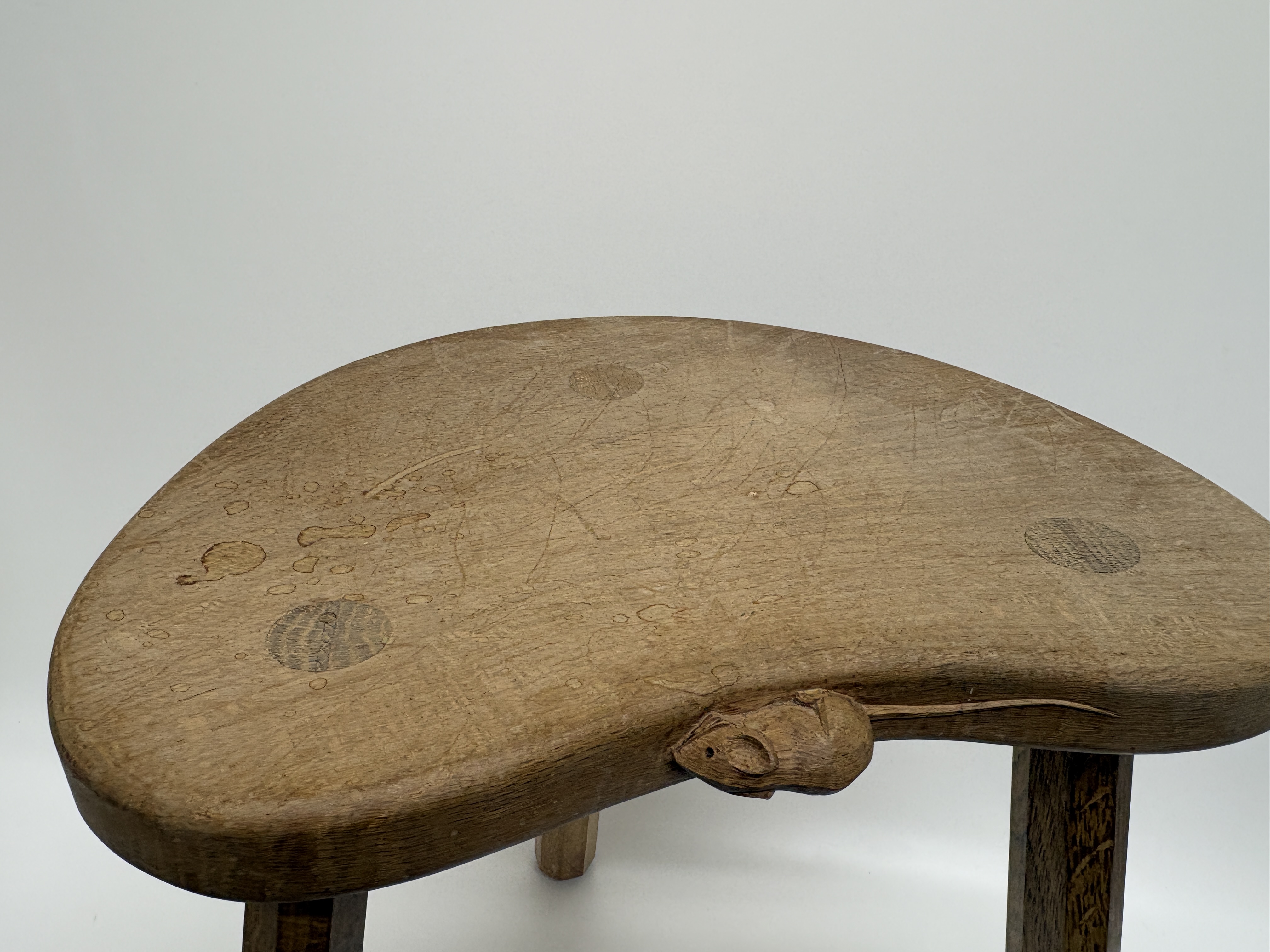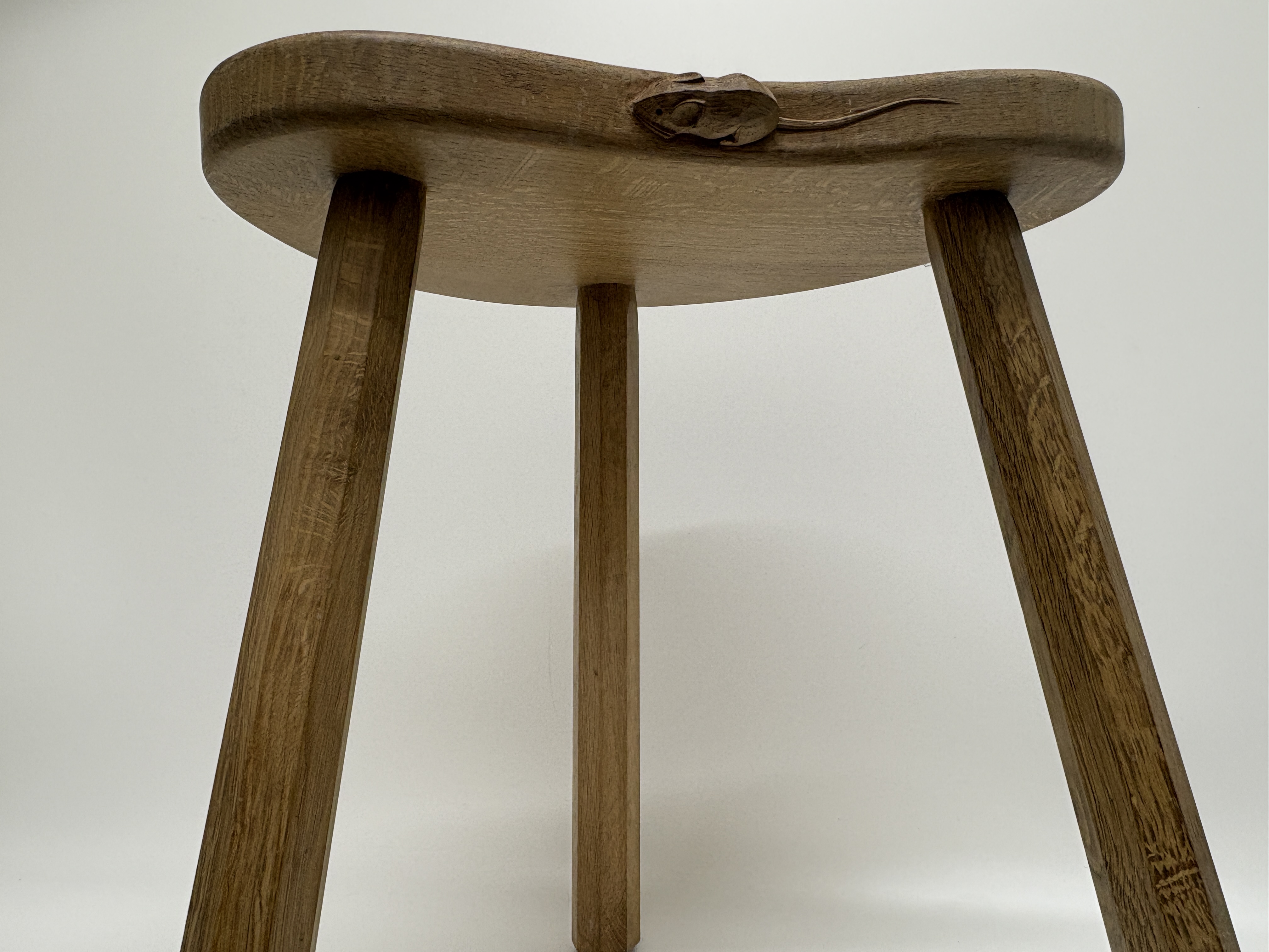 Lot 209: Robert Mouseman Thompson, Carved Oak Stool, 20th Century, Three Legged Stool