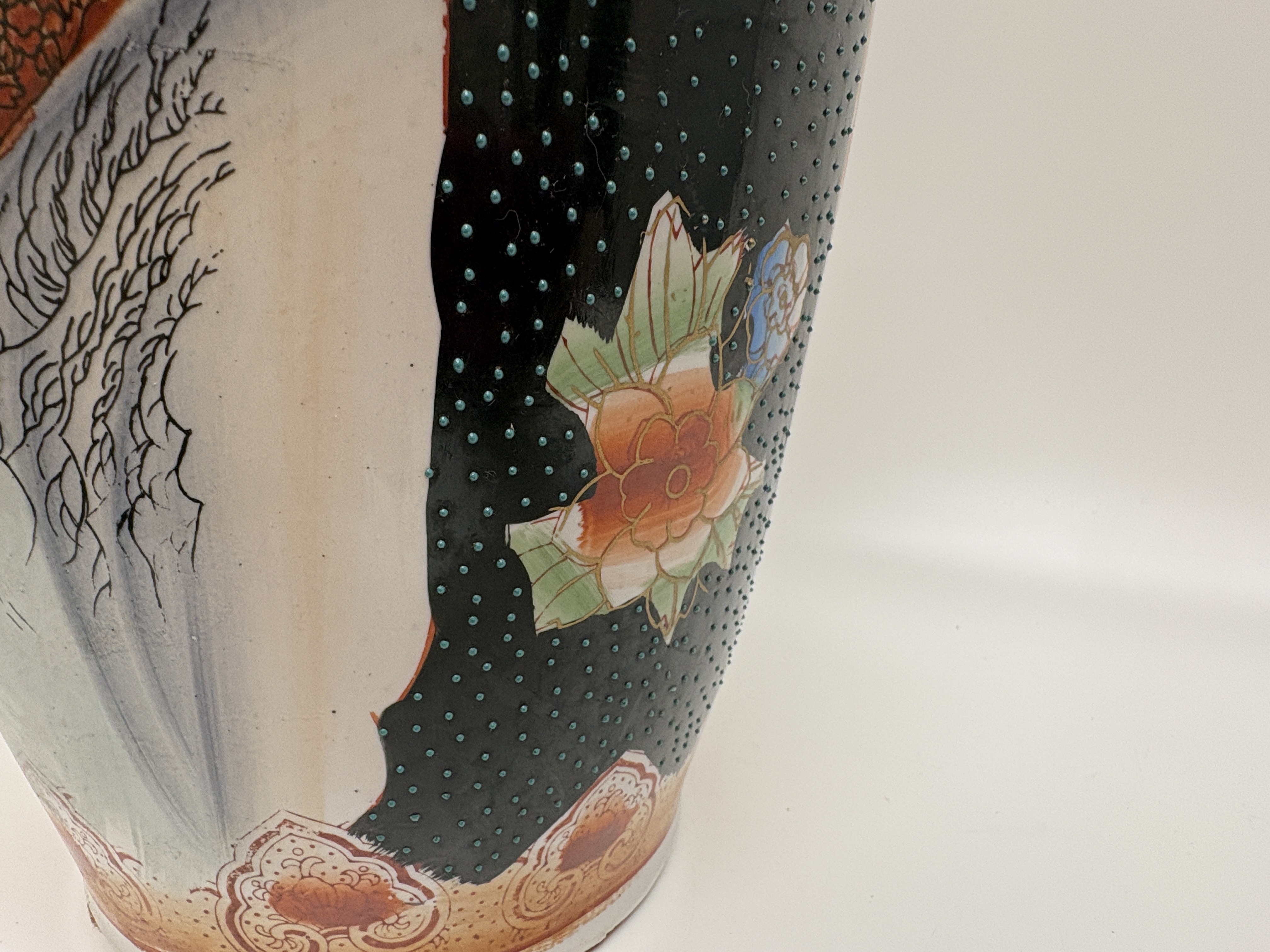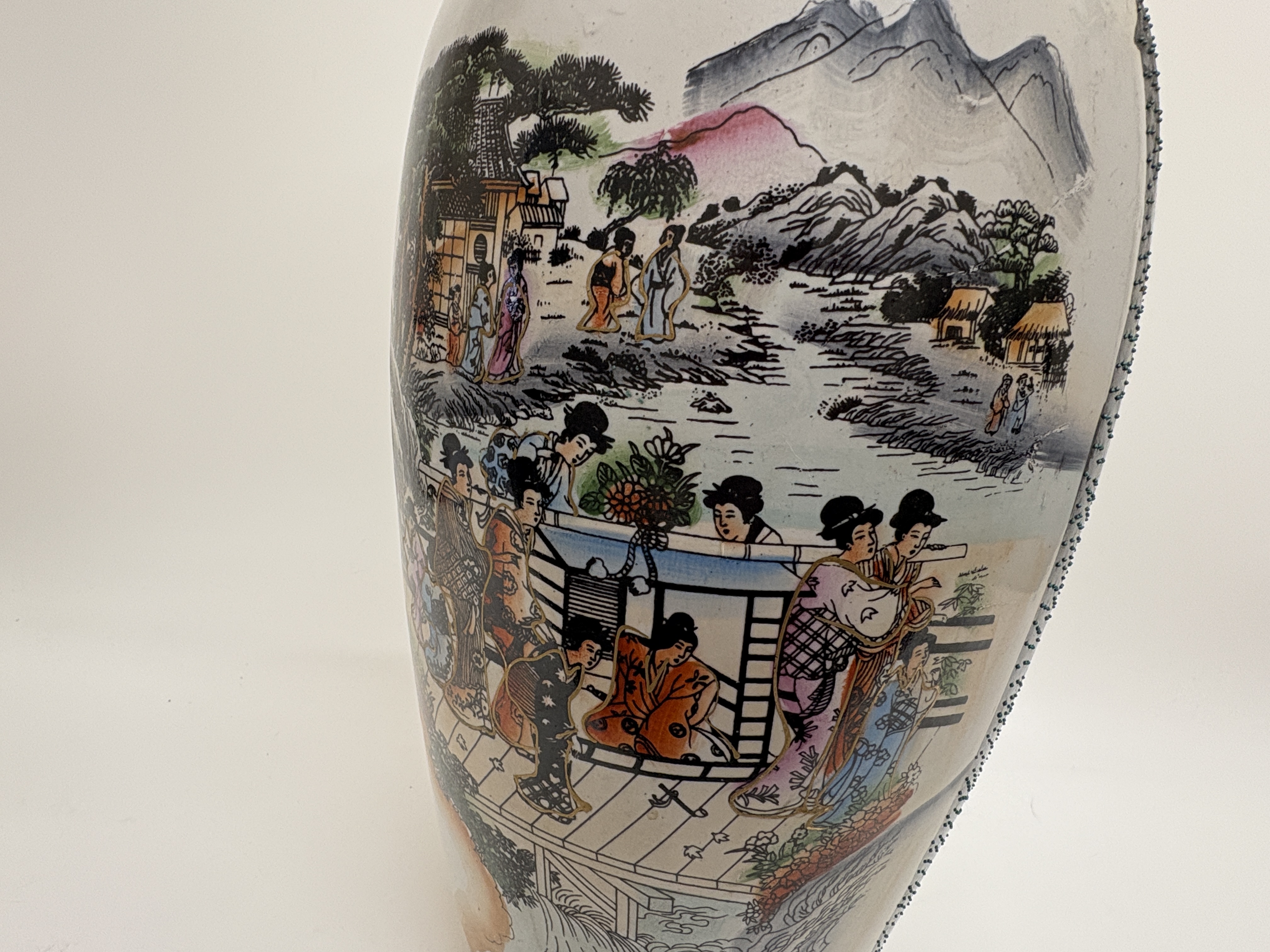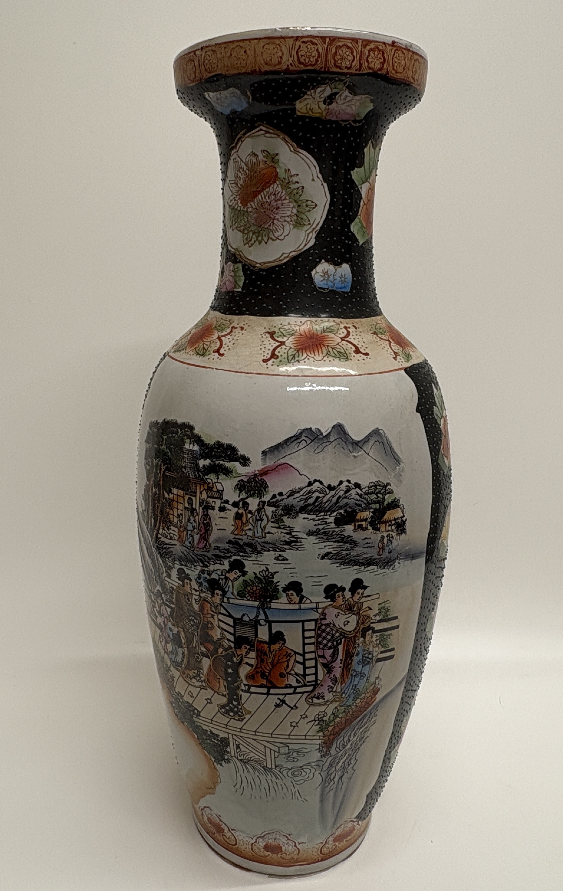 Lot 275: Satsuma-style Earthenware Vase with Moriage Enamels and Figural Landscape, Early 20th Century