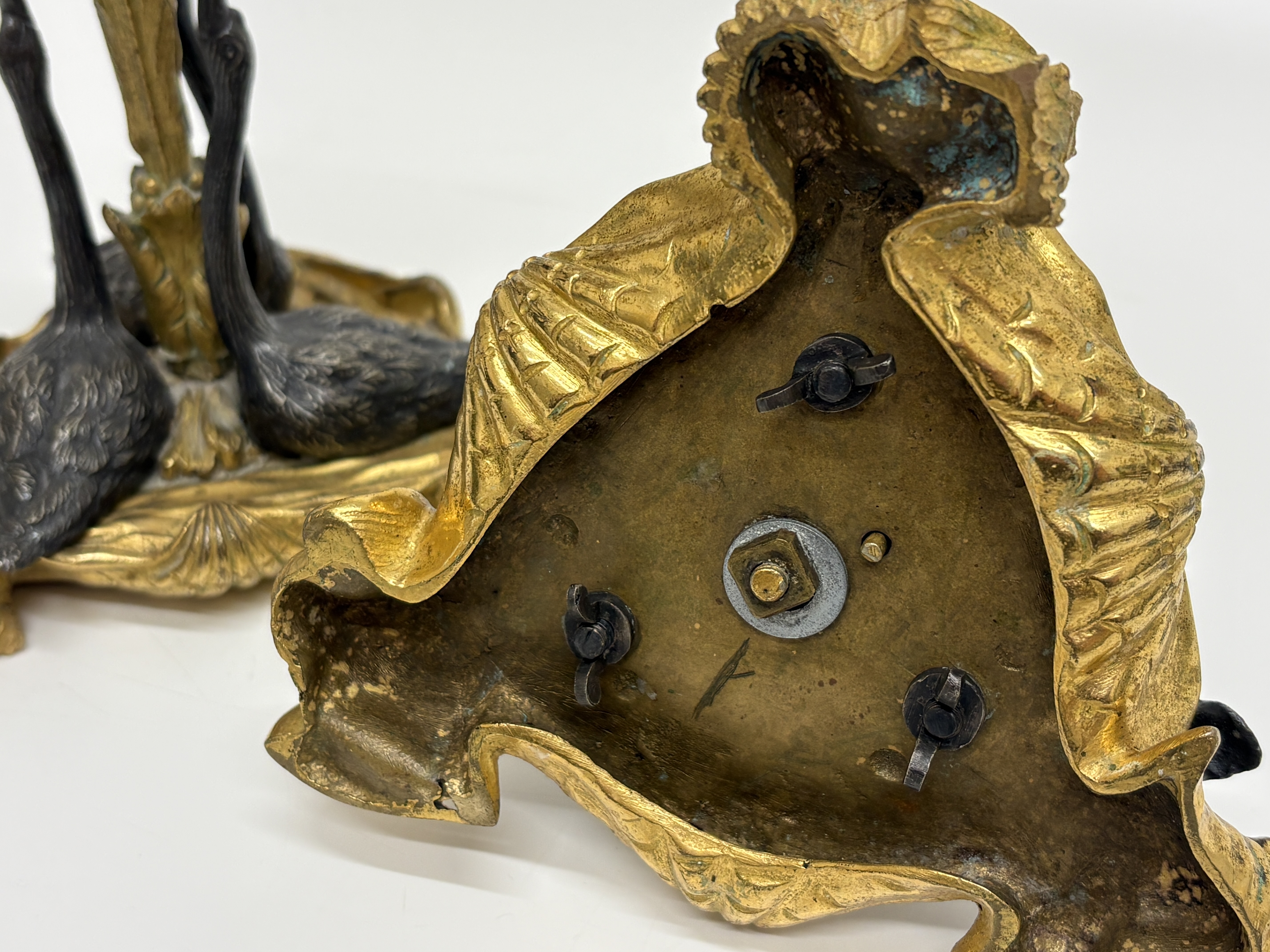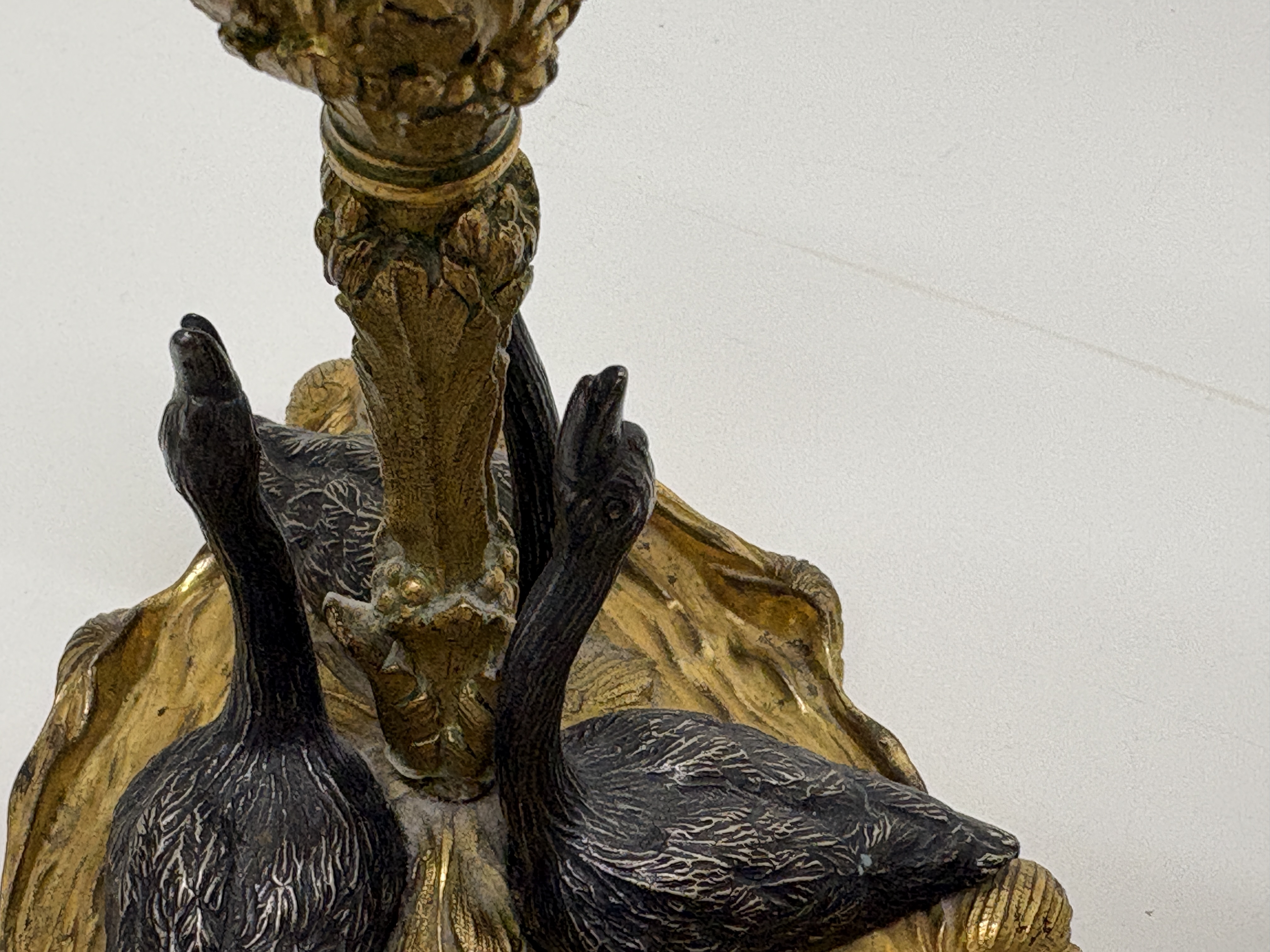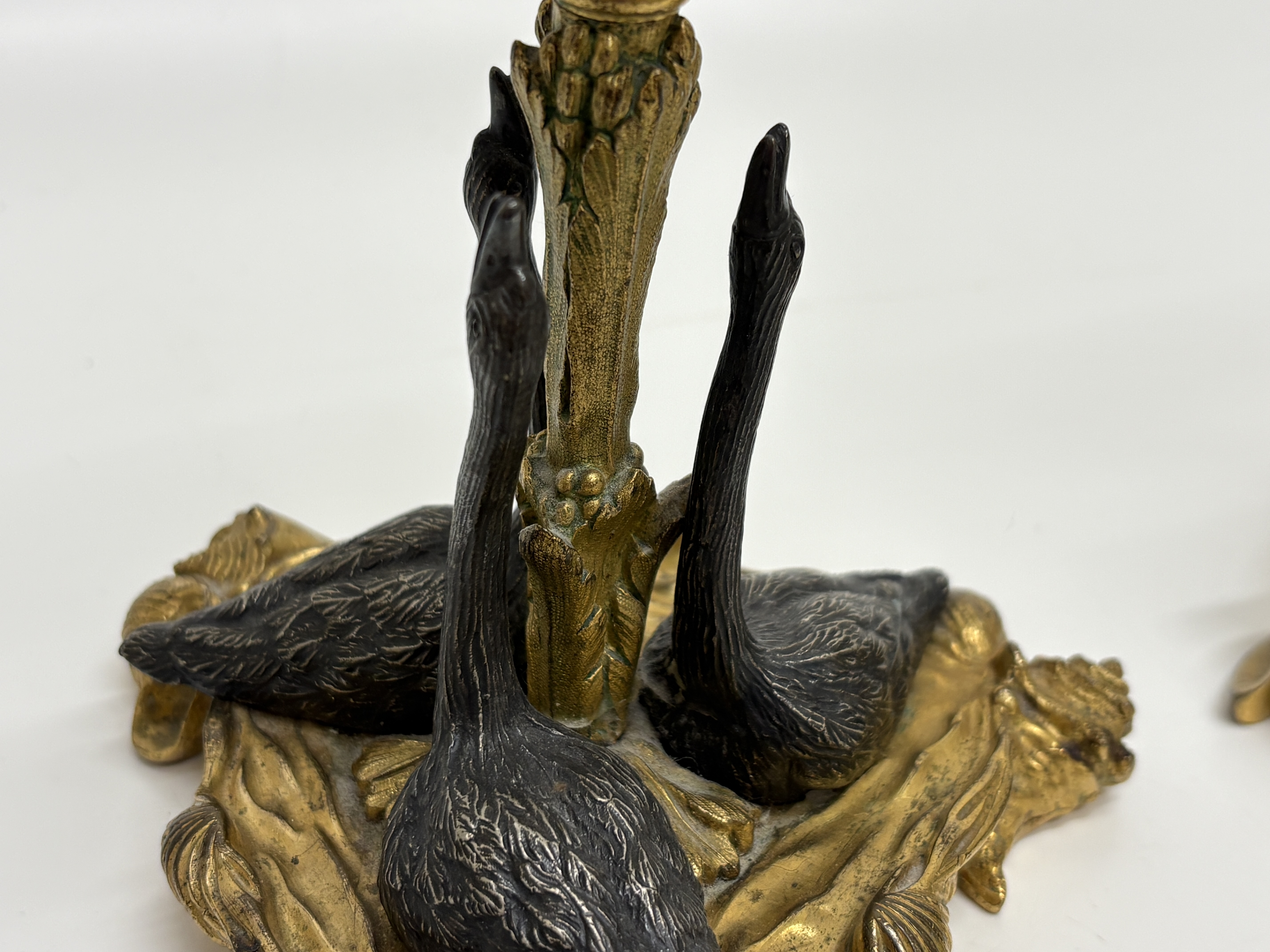 Lot 402: A Pair of 19th Century Gilt and Patinated Bronze Swan-Form Candlesticks in the Manner of William Bateman II height 16cm
