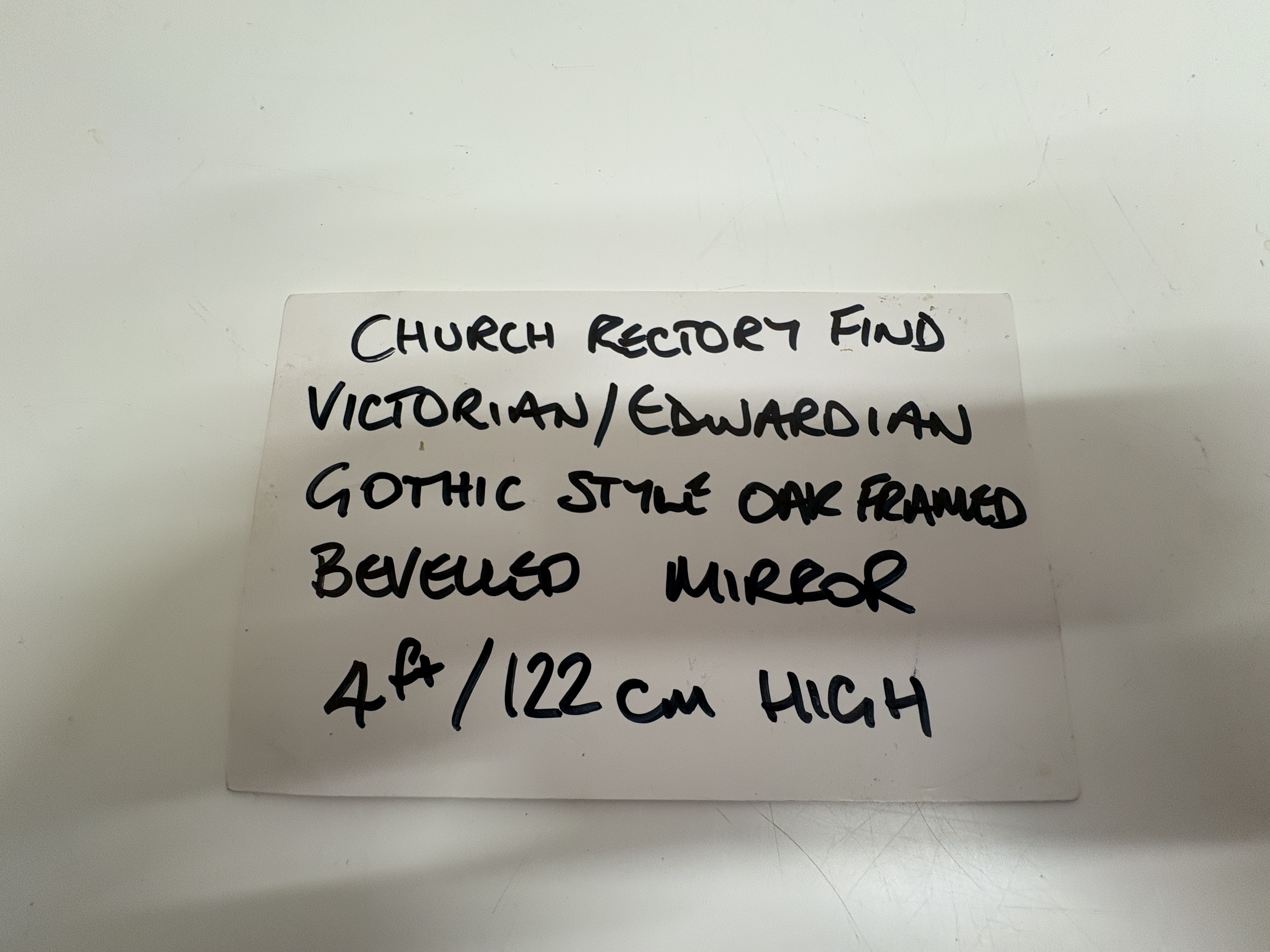 Lot 446: Gothic Style Oak Framed, Bevelled Wall Mirror, Late Victorian