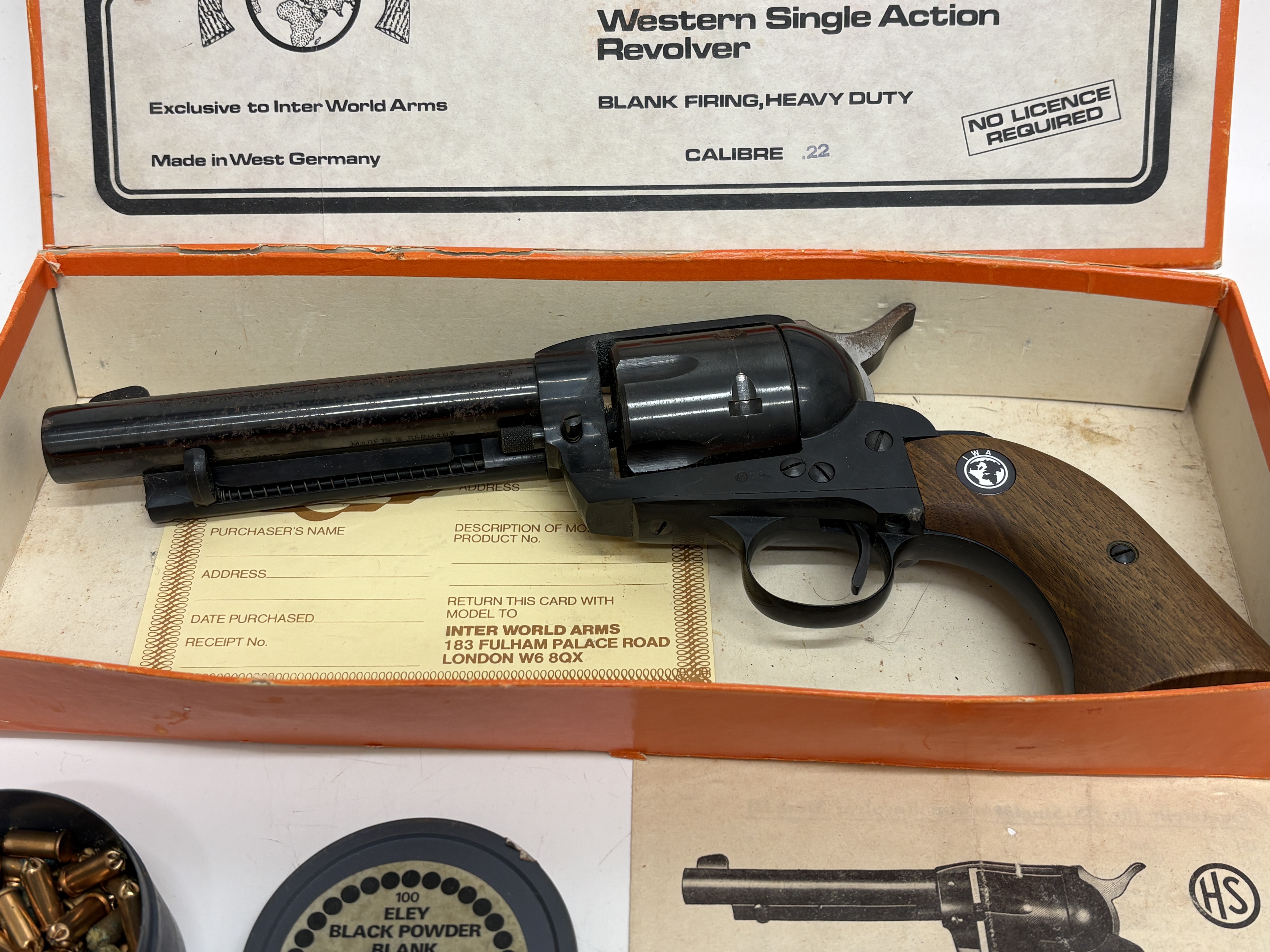 Blank-firing revolver. No licence required for purchase (UK).
