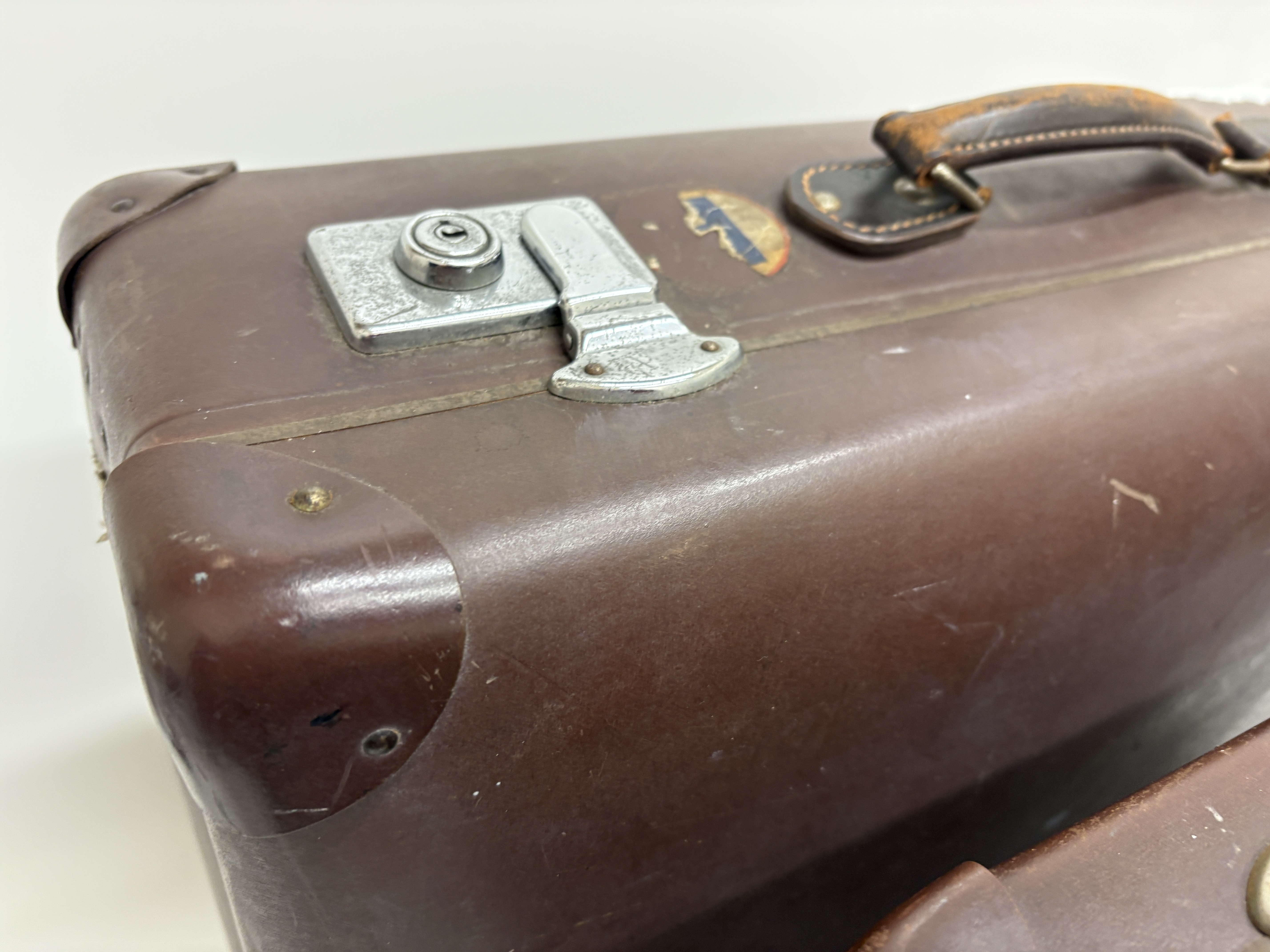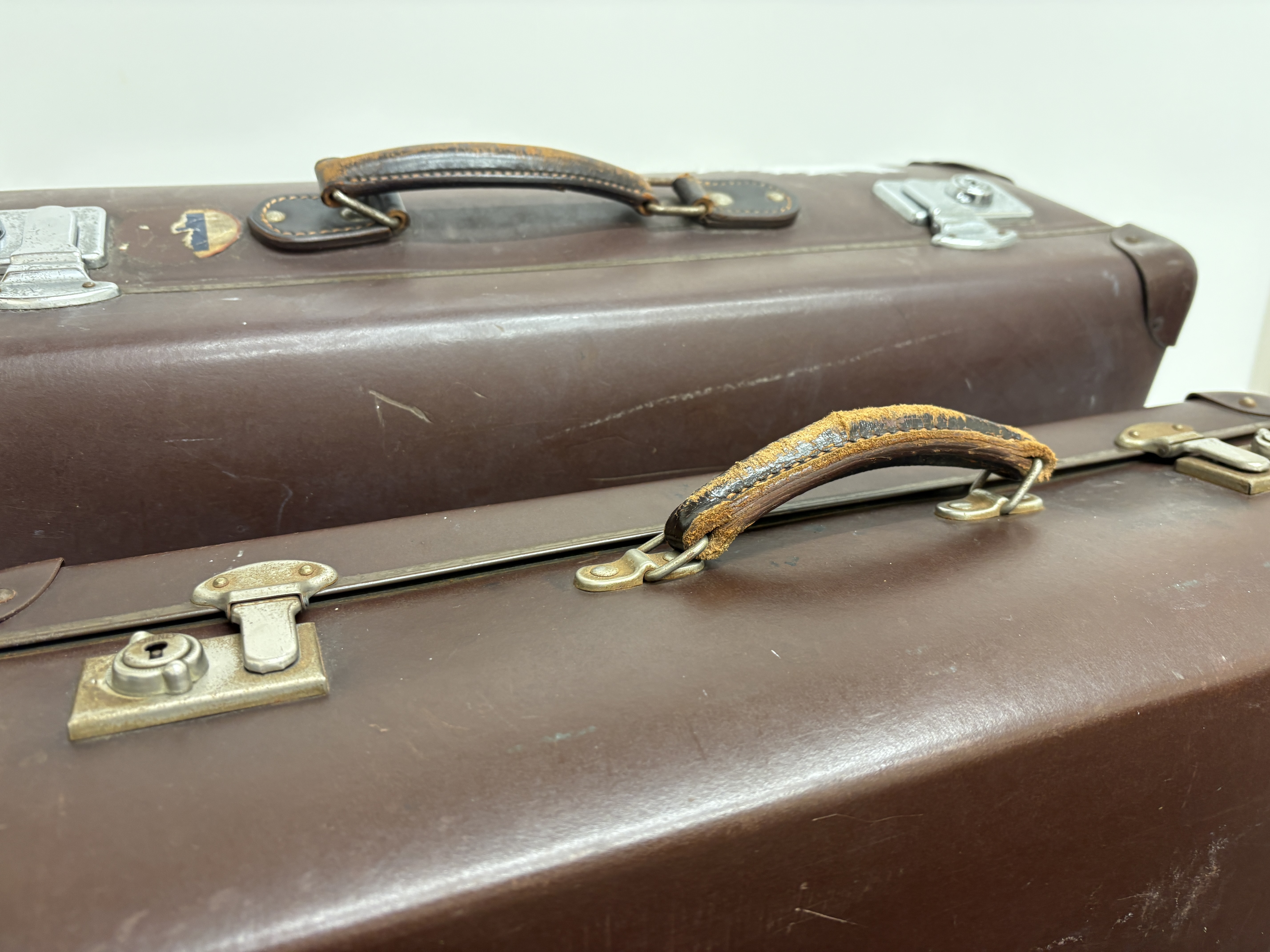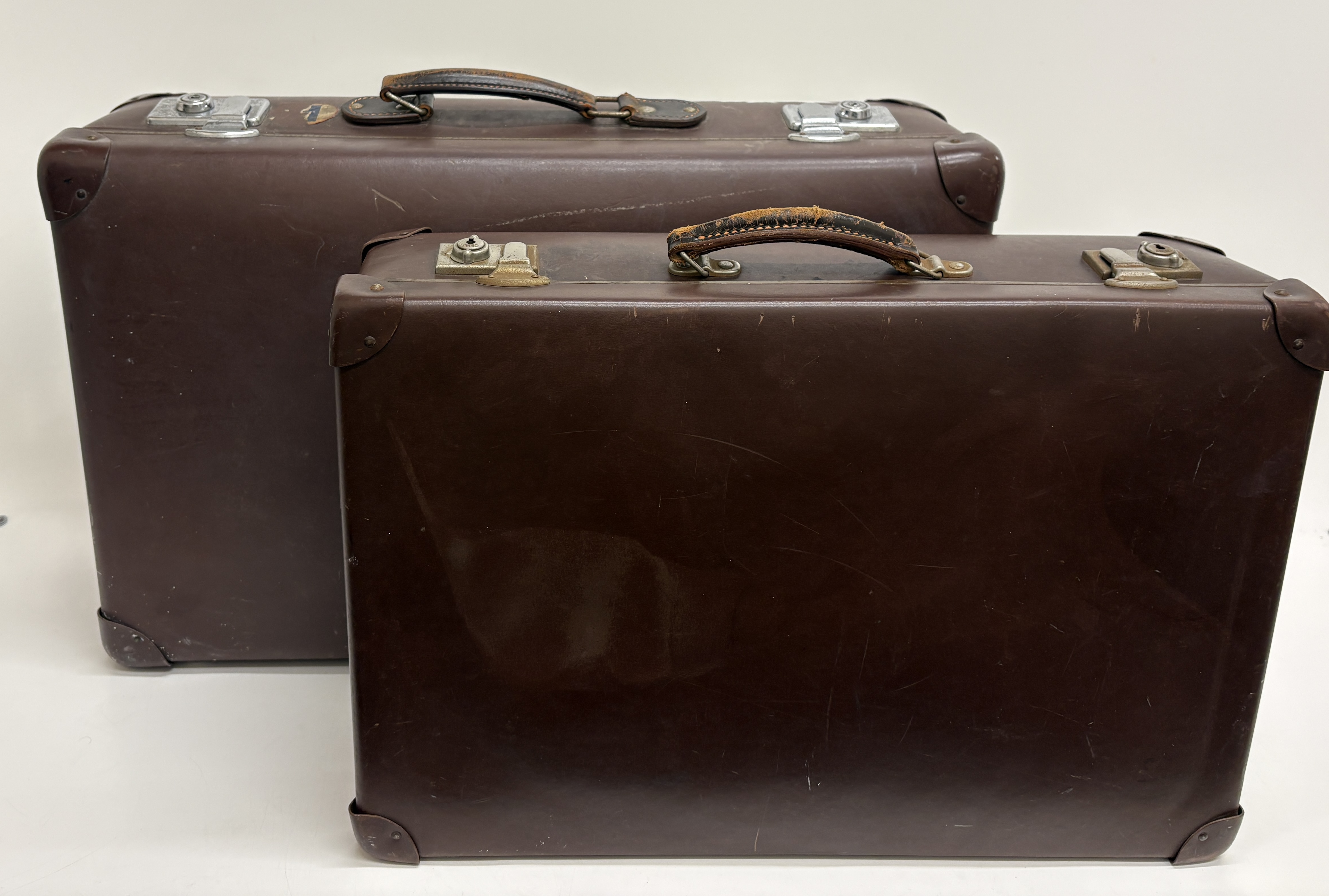 Lot 494: A Pair of Vintage Globe-Trotter Vulcanised Fibre Suitcases, Made in England, Mid-20th Century