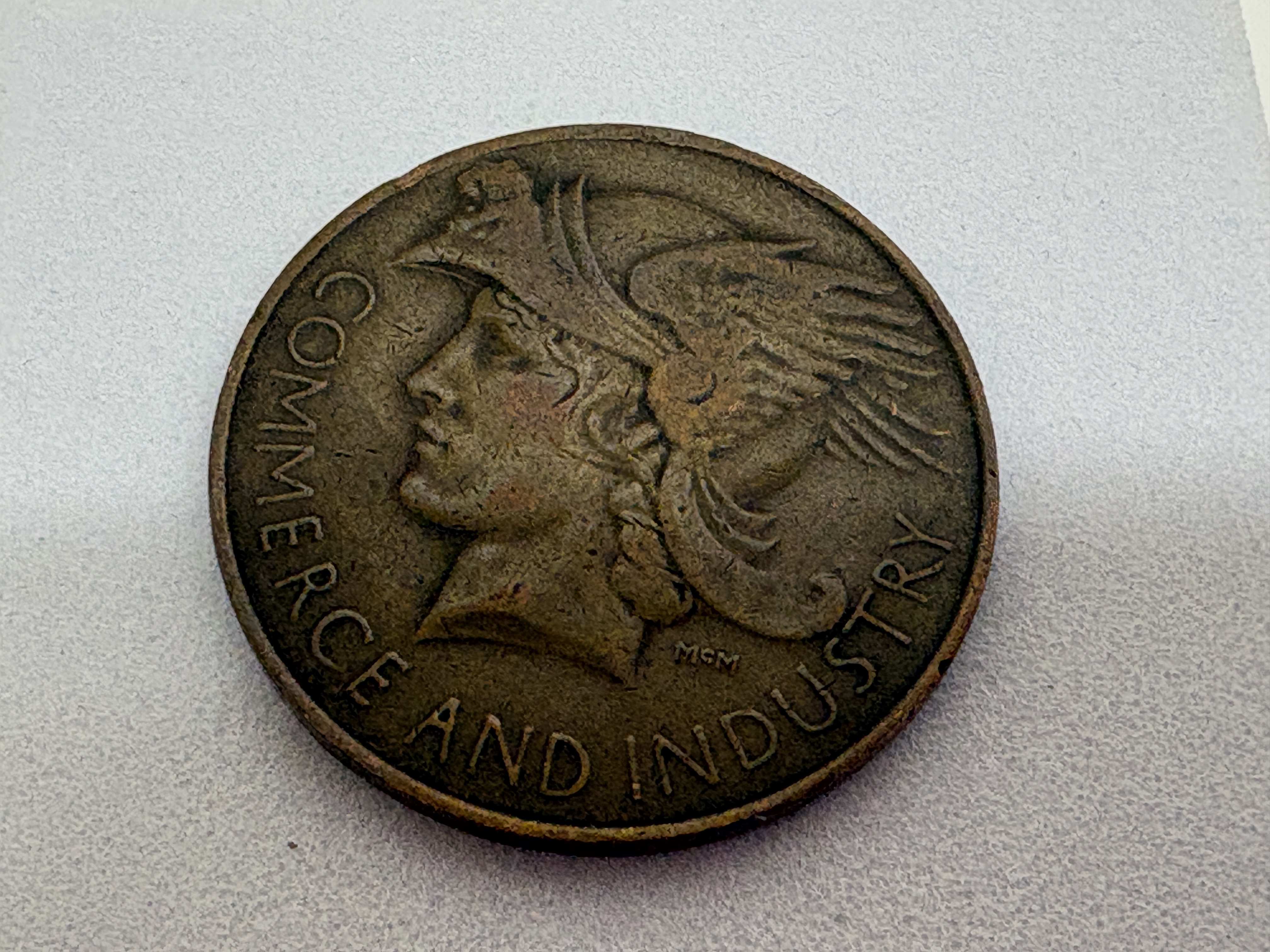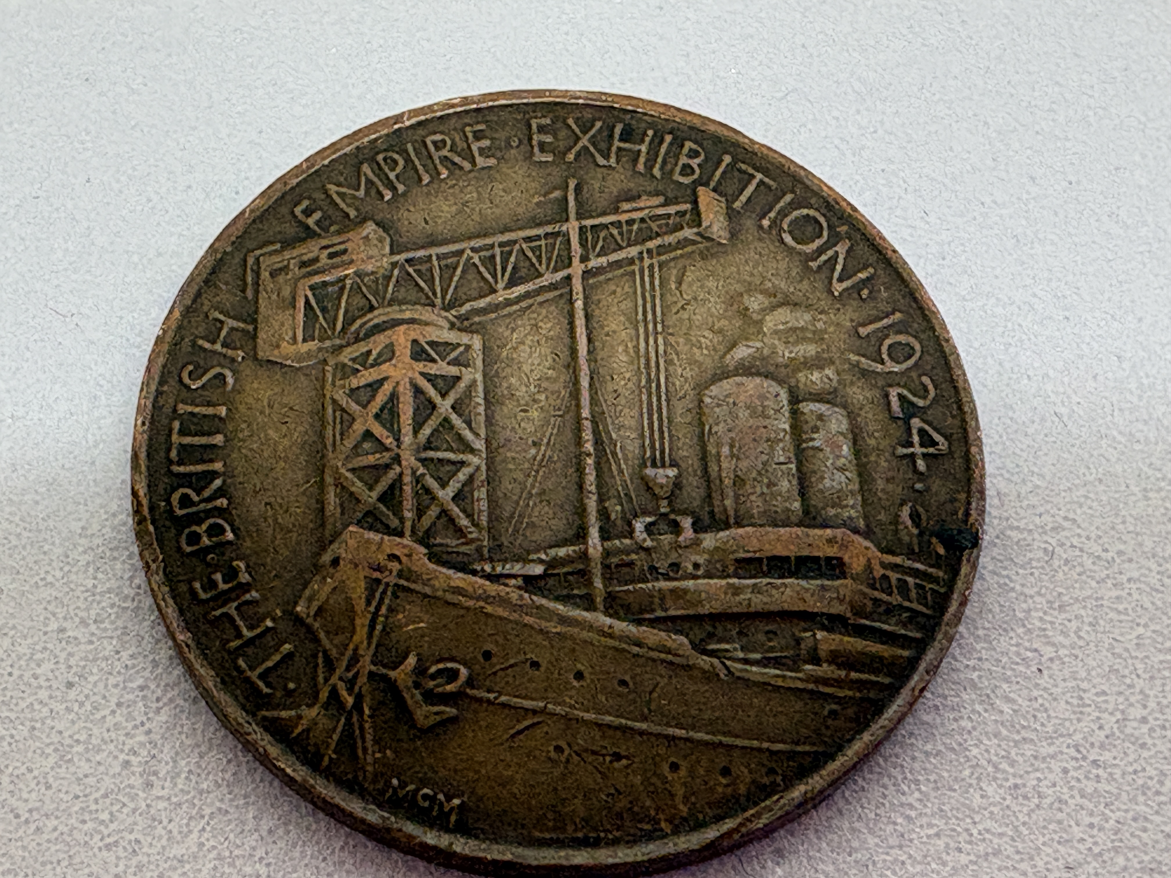 Royal Mint, London. Commerce and Industry obverse. Key identifiers: MCM designer initials on obverse and reverse. Struck for the British Empire Exhibition at Wembley.