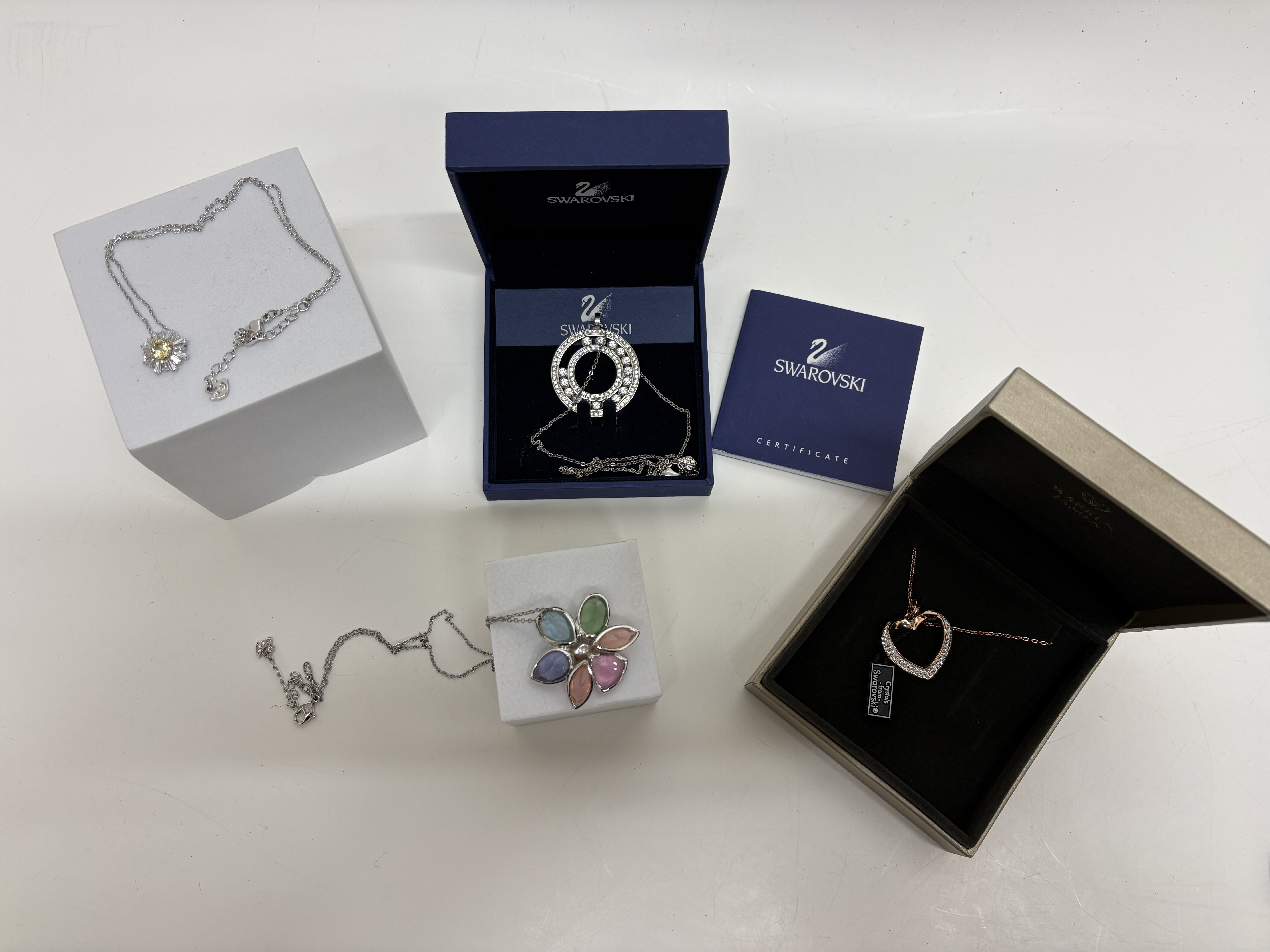 Lot 509: four Pendant necklaces featuring Swarovski crystals