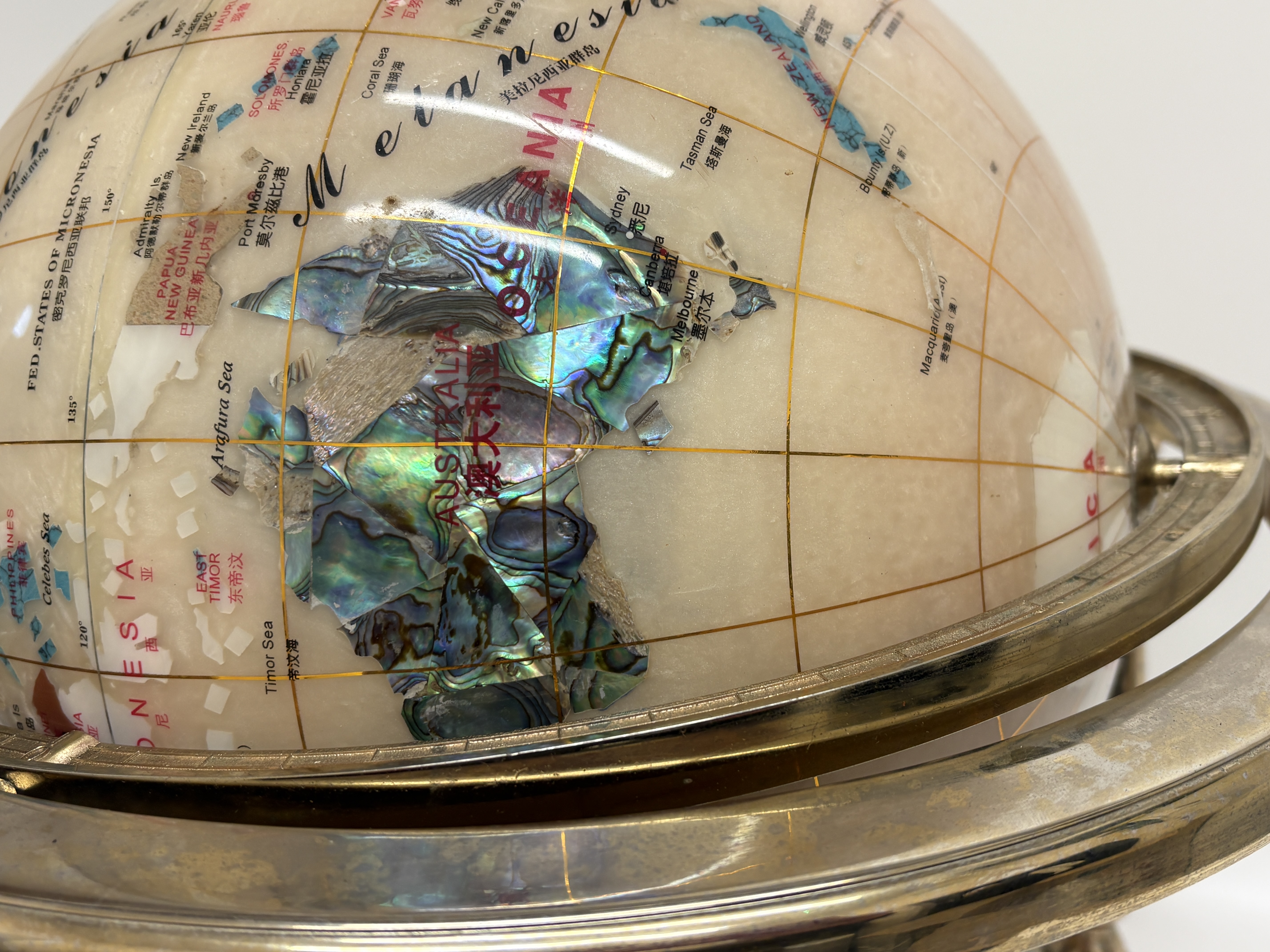 Lot 56: Unique Art Gemstone and Shell Inlaid Globe