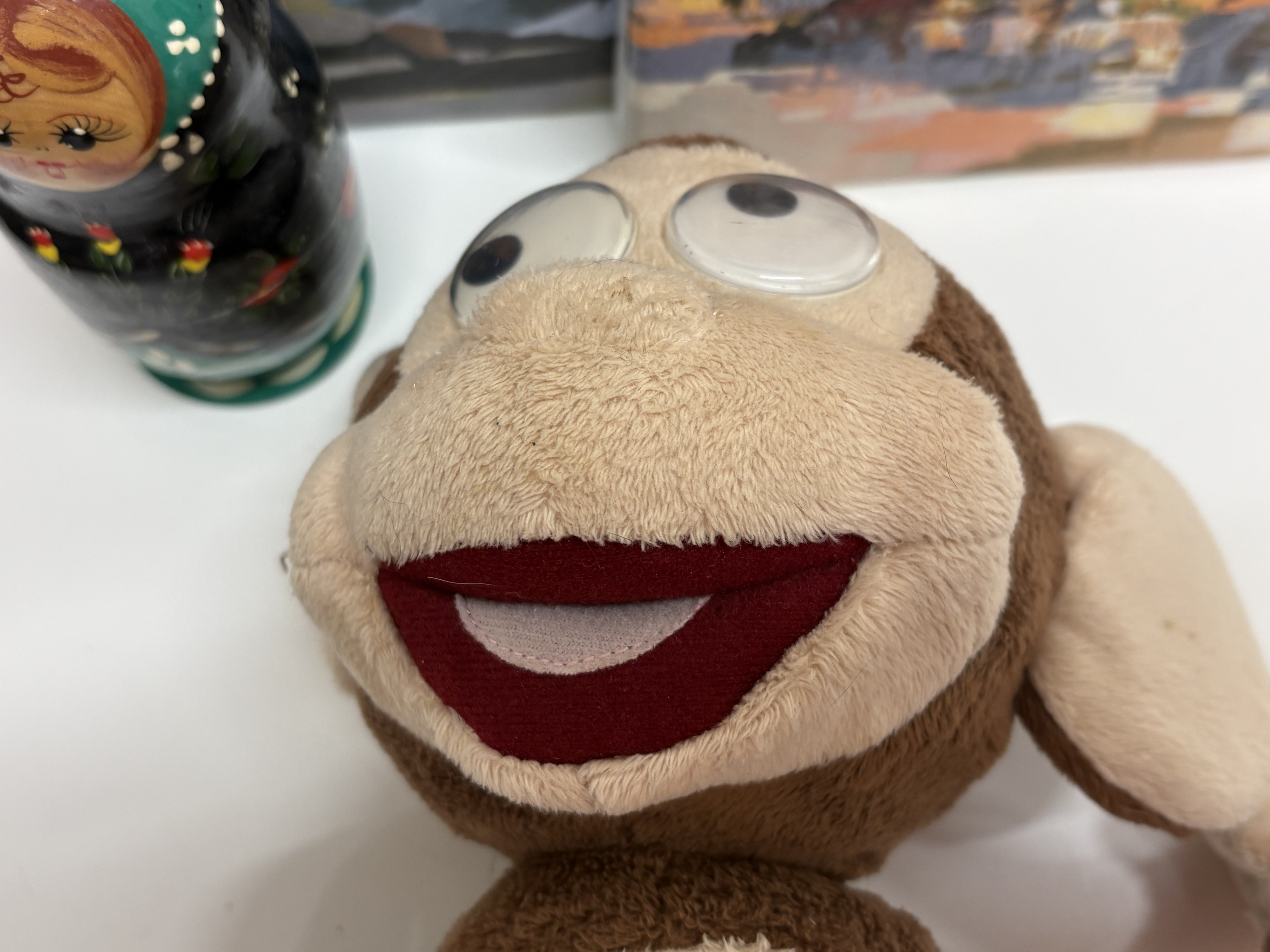 Lot 64: An Assortment of Toys, Games, and Decorative Items including a Wolf Hand Puppet by The Puppet Company