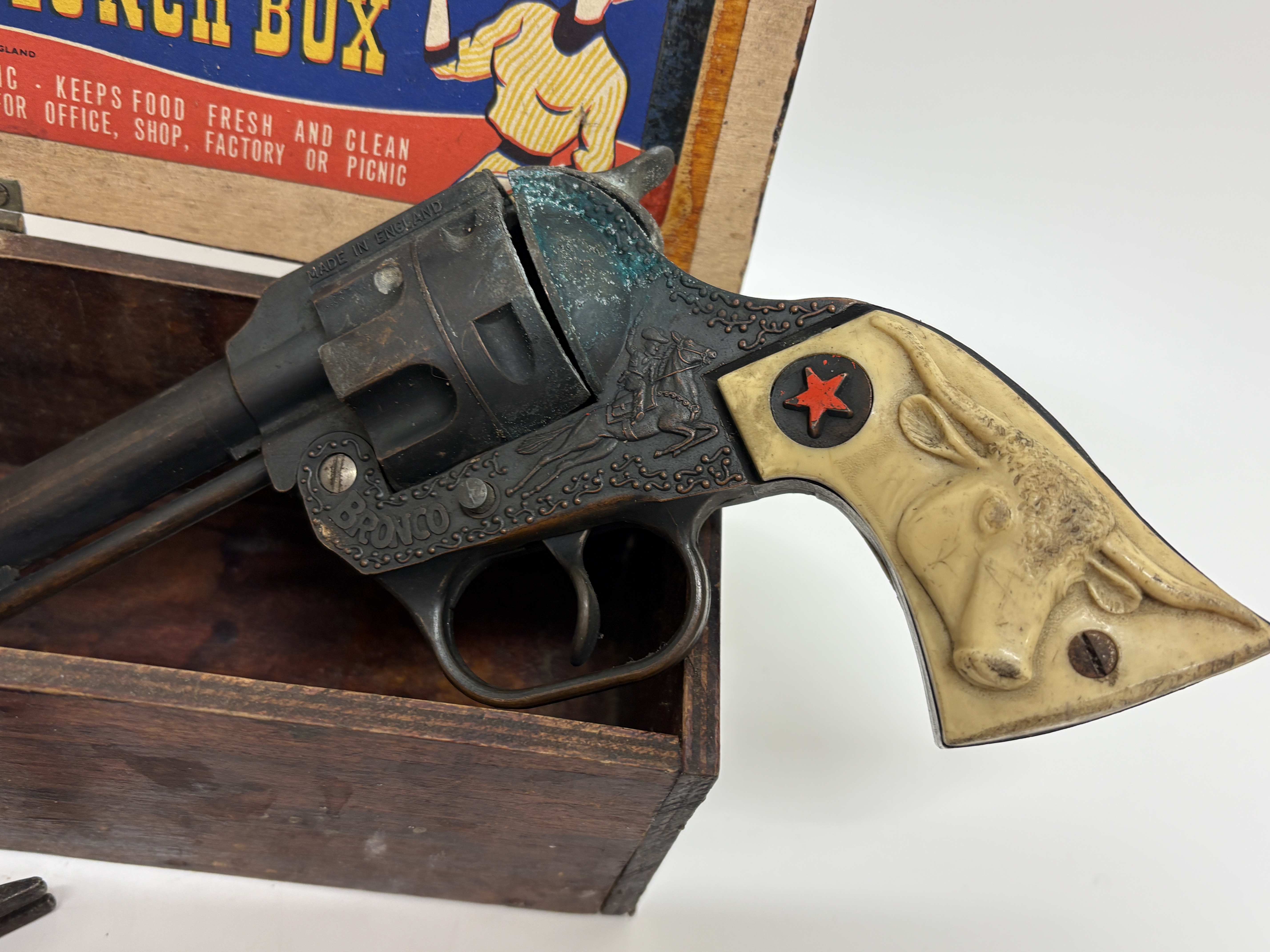 Lot 69: A Group of Vintage Items Including a Bronco Cap Gun