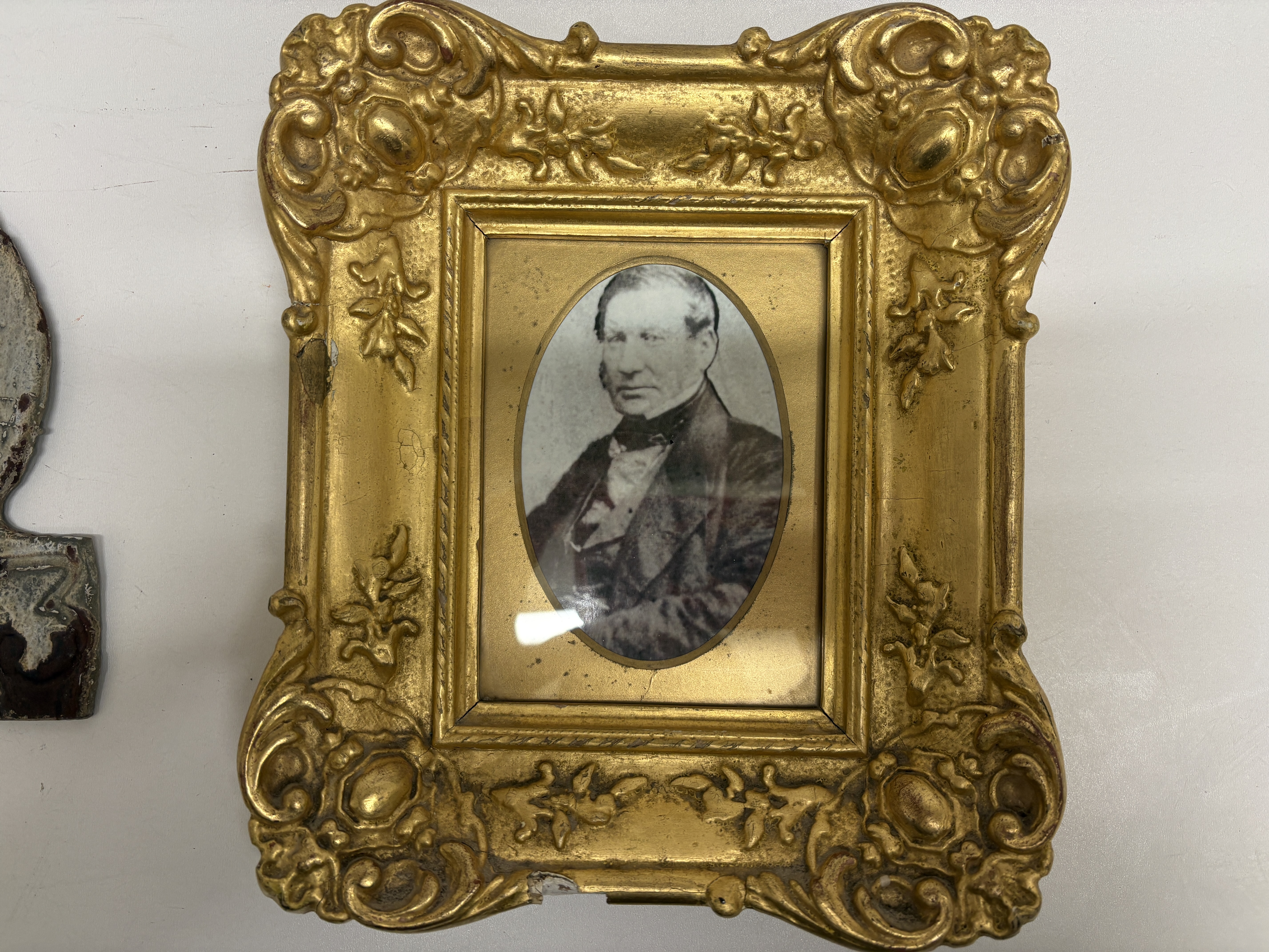 Lot 89: Original Cast Metal Insurance Plaque and a Framed 19th Century Portrait of Alexander Bartleman whos property on Front Street Tynemouth which had the plaque, see all pictures